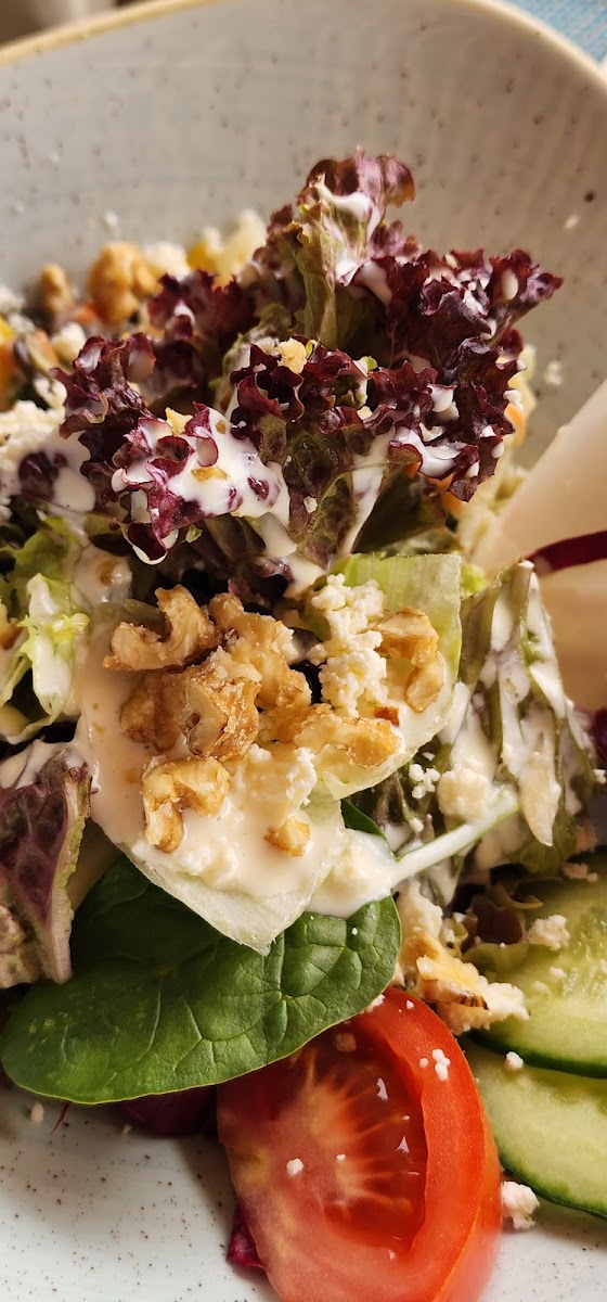Good food and selection of drinks, though pricey (as expected for the area). Nice semi-outdoor seating with great views of the bustling street and beyond into the valley and up to Jungfrau! Service was friendly enough and the place felt clean. Bathrooms were inside the hotel lobby and parking could be found down along the street.